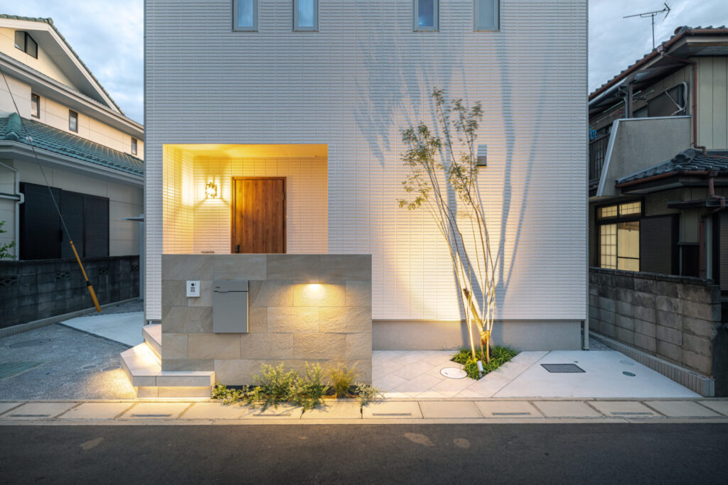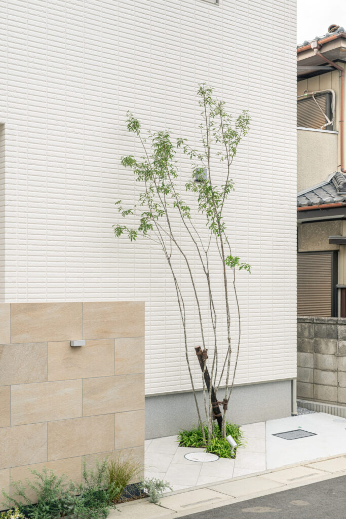 シンプルな白の外壁を映させる美しさを感じられるファサードをデザインしました。